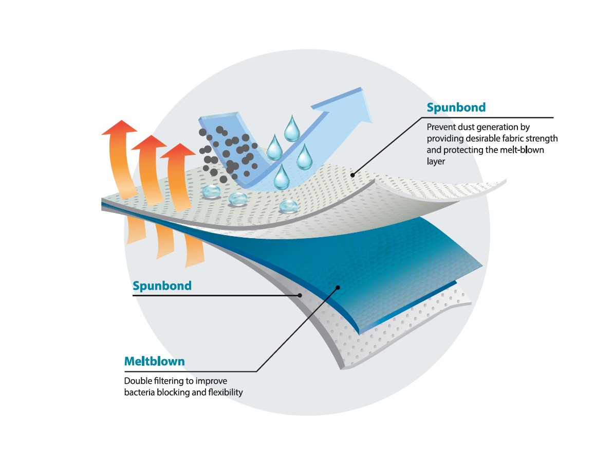 SS(MM)S structure (Spunbond + Meltblown + Spunbond)